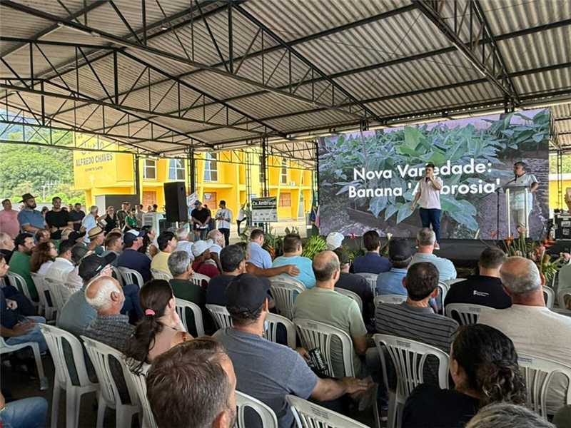 Produtores rurais de diversos municípios do Espírito Santo participaram em grande número do lançamento oficial da nova cultivar de banana tipo nanica “Ambrosia”, na quarta-feira (26), no Parque de Exposições Reginaldo Roque Giori, em Alfredo Chaves, quando foi apresentado o resultado de mais de 20 anos de pesquisas conduzidas pelo Incaper.
