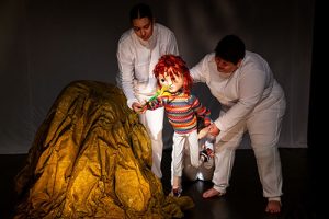 Um dos grandes diferenciais da montagem é sua riqueza visual. A encenação aposta em uma estética mista, unindo a interpretação dos atores à manipulação de bonecos, teatro de sombras, máscaras e trilha musical envolvente. O resultado é uma atmosfera mágica que cativa tanto as crianças quanto os adultos.