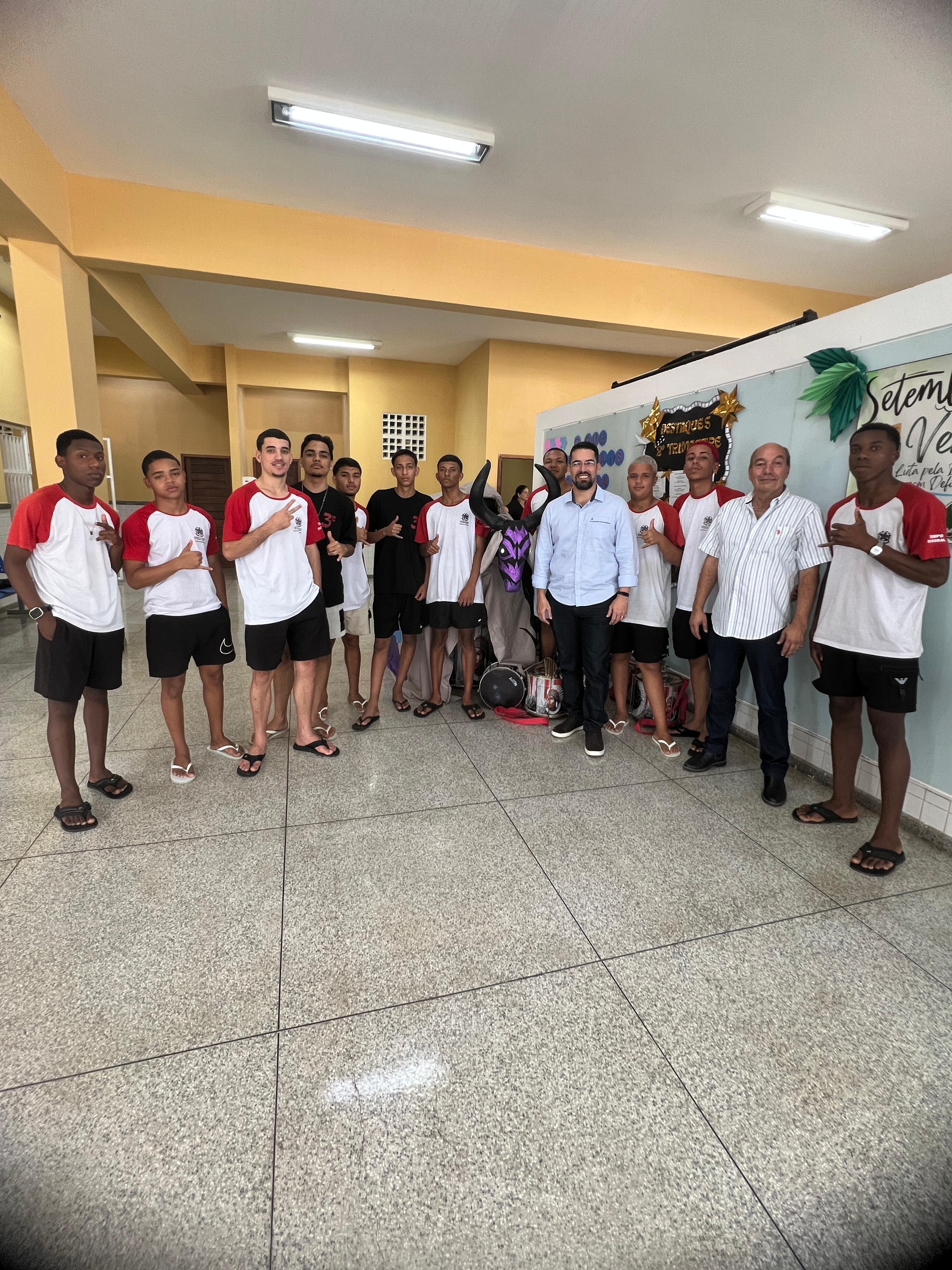 O secretário de Estado do Turismo, Victor Coelho, foi recepcionado pelo secretário municipal de Turismo e Cultura, Anderson Colucio Muchuli, pelo diretor do CEEFMTI Senador Dirceu Cardoso, Adelmo Almeida Silva, e o professor Cláudio José.