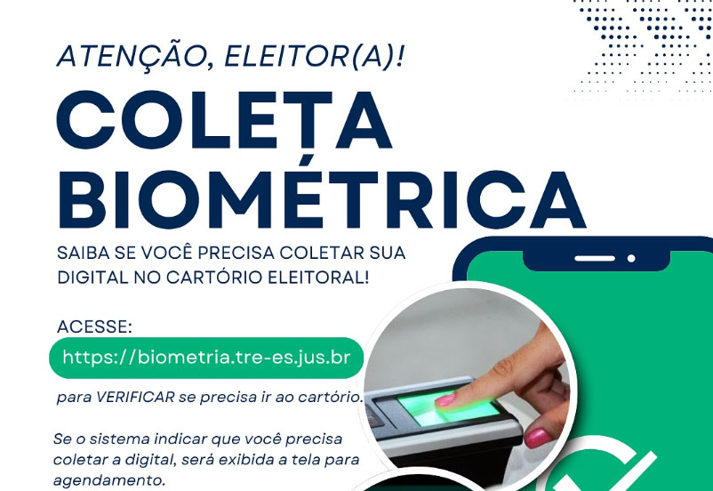 O Tribunal Regional Eleitoral do Espírito Santo (TRE-ES) informa que o prazo para a coleta biométrica vai de 13 de outubro de 2025 a 30 de dezembro de 2025. Durante esse período, os eleitores que ainda não registraram suas digitais deverão comparecer ao cartório eleitoral, apenas se o sistema indicar a necessidade.