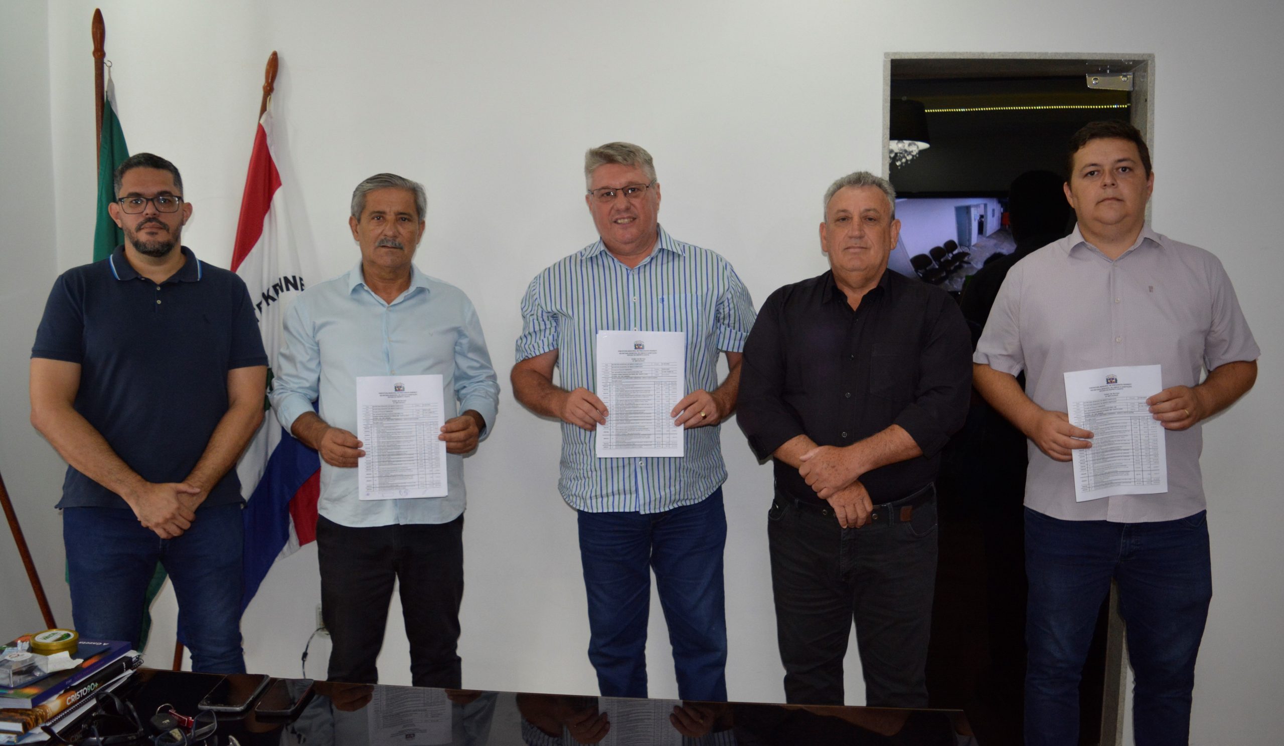 O ato de Ordem de Serviço foi assinado pelo prefeito Dorlei Fontão, pelo secretário de Obras, Fernando Busato, pelo representante da empresa FBT Infraestrutura e Edificações e pelos delegados de polícia, Faustino Antunes e Thiago Viana.