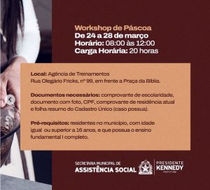 Presidente Kennedy: Inscrições abertas para Workshop de Páscoa