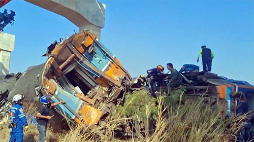 A polícia local informou à Reuters por telefone que um guindaste que trabalhava em um projeto de trem de alta velocidade desabou e atingiu o trem que passava, causando seu descarrilamento e um breve incêndio.